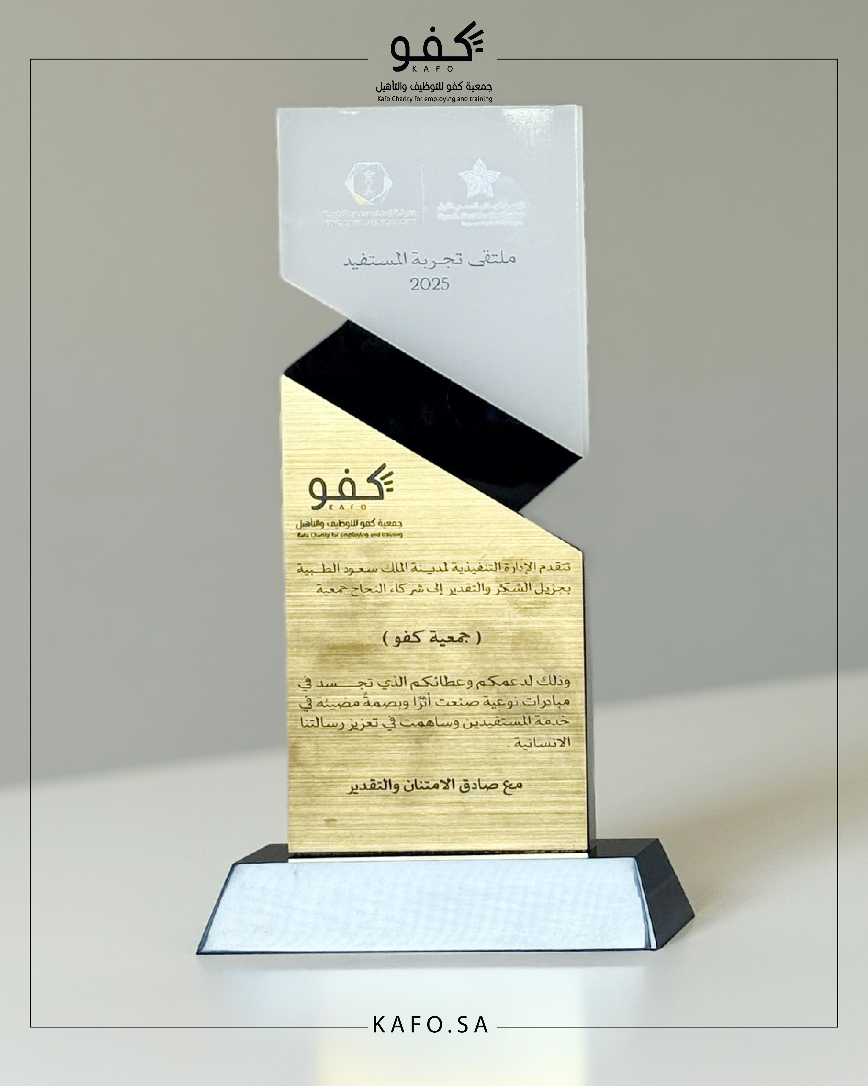ضمن فعاليات ملتقى تجربة المستفيد 2025، حظيت جمعية كفو للتوظيف والتأهيل بتكريم خاص من قبل التجمع الصحي الأول ومدينة الملك سعود الطبية لنجاحها في تنفيذ مشروع «رفقة كفو»، وهو مشروع غير ربحي يعنى بتقديم المساعدة غير الطبية لزوّار المدينة الطبية من كبار السن وذوي الإعاقة، وتسهيل رحلتهم العلاجية.